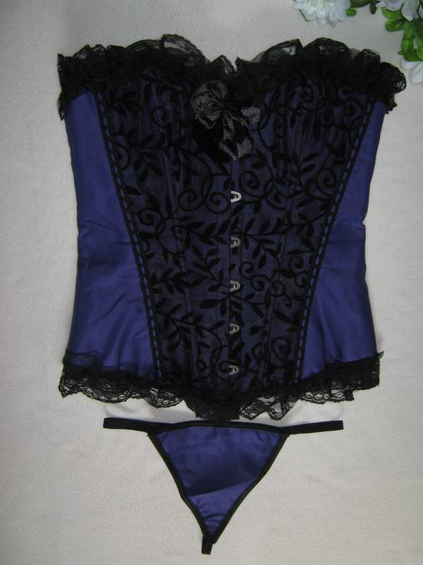 Корсет с бархатным узором. Спереди застежка бюск, сзади шнуровка.
