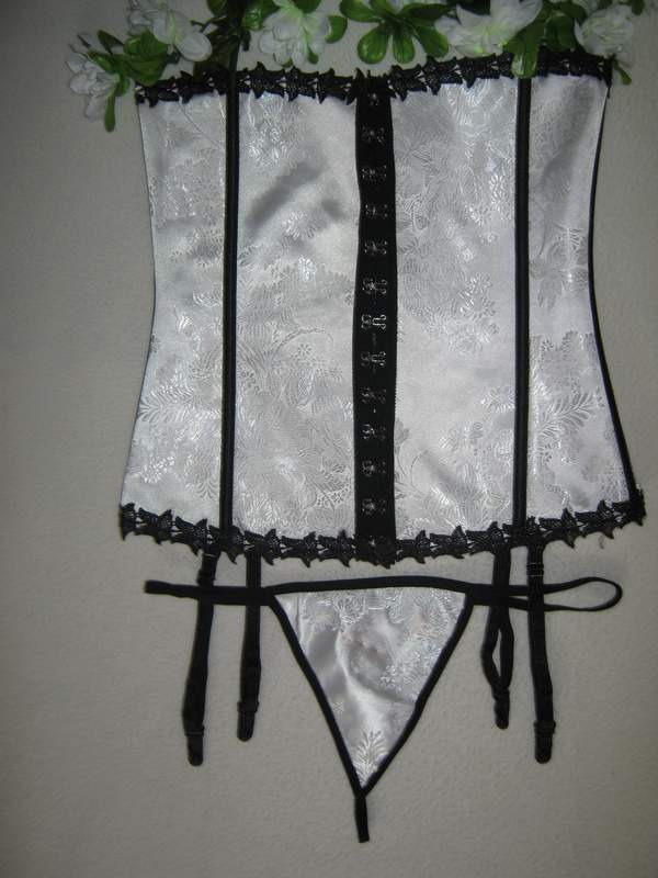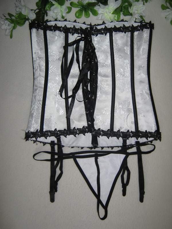 Классический корсет с цветочным рисунком. Спереди застежка - крючочки, сзади классическая шнуровка.