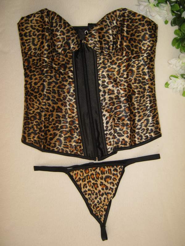 Сексуальный леопардовый корсет с чашечками. Классическая шнуровка сзади, спереди на молнии.