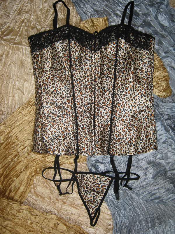 Застежка-крючочки спереди, классическая шнуровка сзади. В комплекте трусики-стринги и съемные подвязки для чулок. Корсет не является утягивающим!