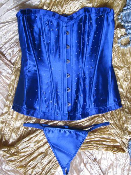 Корсет украшен стразами. Шнуровка сзади, прочные металлические застежки спереди