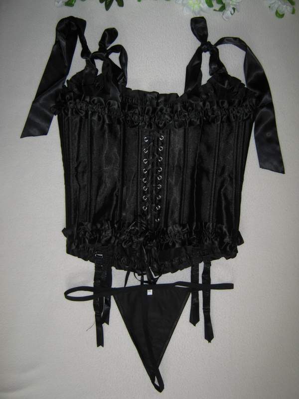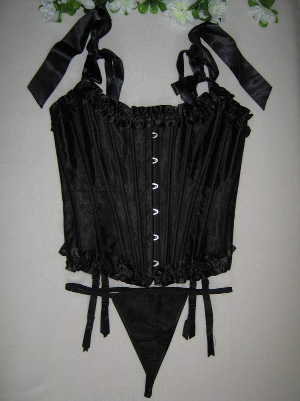Классическая шнуровка сзади, прочная стальная застежка - бюск спереди. Имеется подложка под шнуровку, съемные подвязки для чулок.