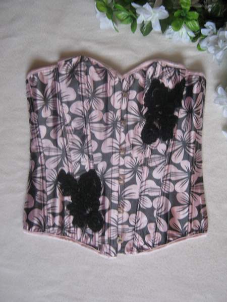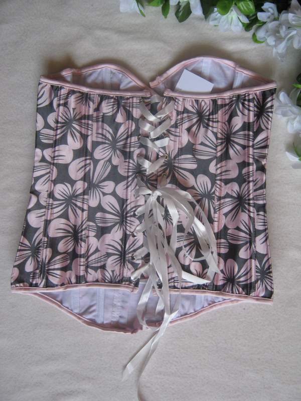 Классический корсет с розовыми цветами на сером фоне. Спереди застежка - стальной бюск, сзади классическая шнуровка.