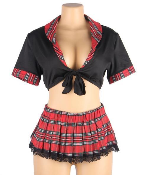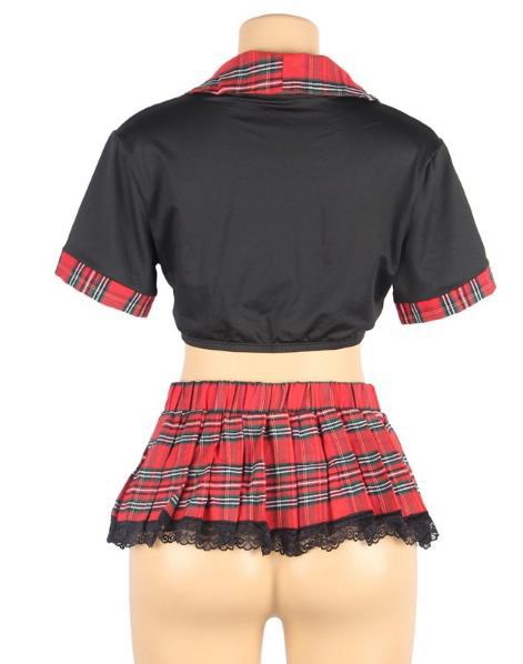 Комплект состоит из юбочки, по низу которой пропущено кружево. Также в комплект входит эластичный топ без косточек.