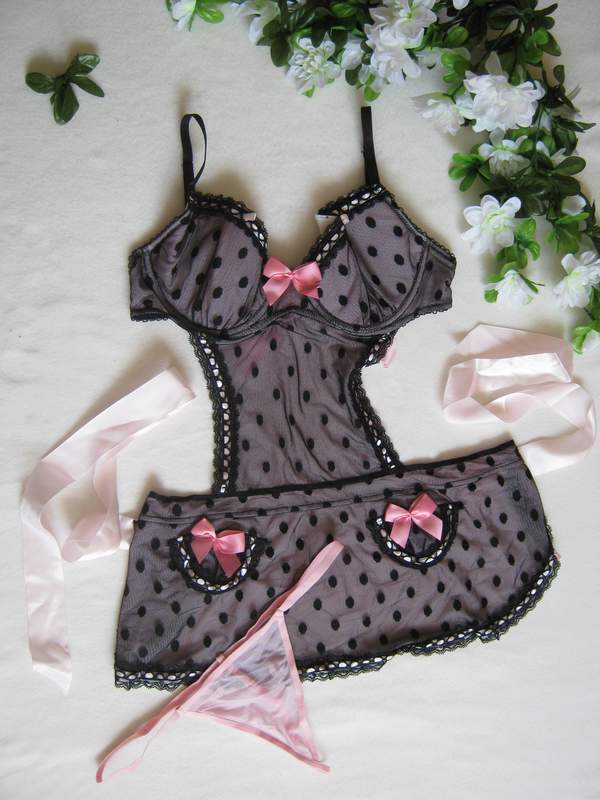Кружевная сорочка-фартучек, завязывающаяся сзади лентами. Бретельки регулируются по высоте.