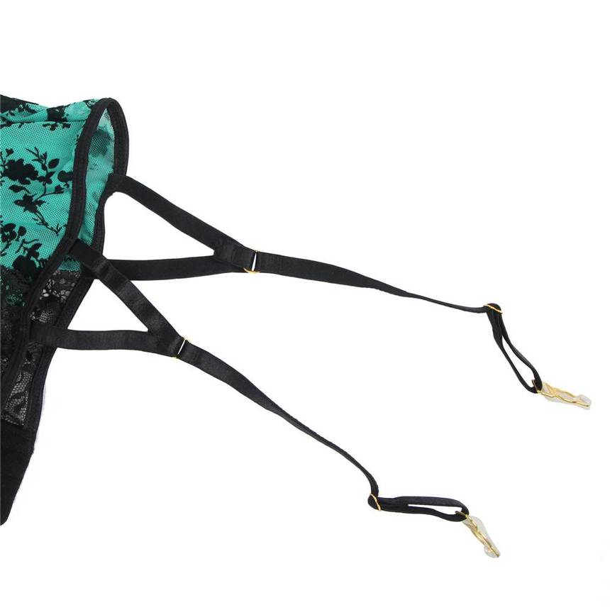 Лямочки на плечах регулируются. Четыре подвязки для чулок также регулируются по длине.