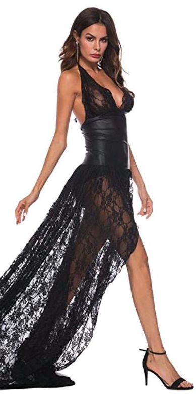 Кружевное платье с лямочкой через шею. Выпускается в размерах M, L, XL, 2XL, 3XL. Длина юбки спереди 55-58 см, сзади 98-100см.