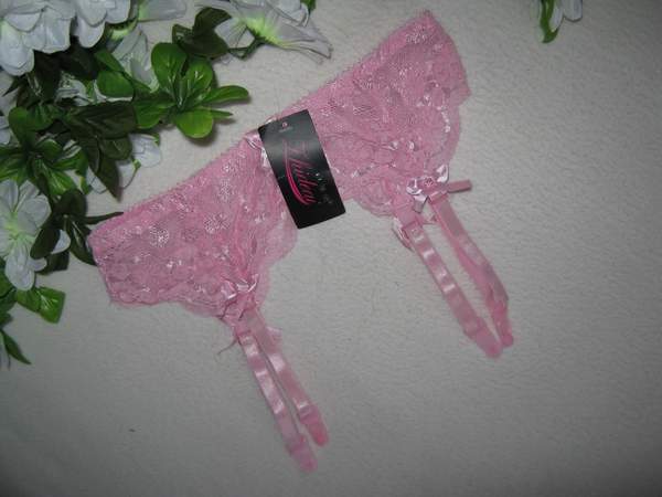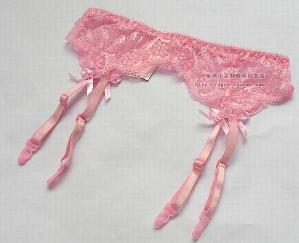Кружевной пояс с подвязками для чулок украшен маленькими атласными розочками. Пажи не отстегиваются, но регулируются по длине.