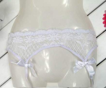 Кружевной пояс с подвязками для чулок украшен маленькими атласными бантиками. Пажи не отстегиваются, но регулируются по длине.