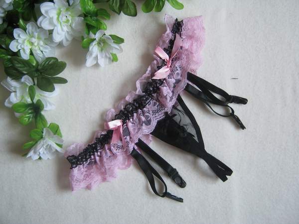 Кружевные трусики-стринги с подвязками для чулок. Трусики имеют эротический разрез
