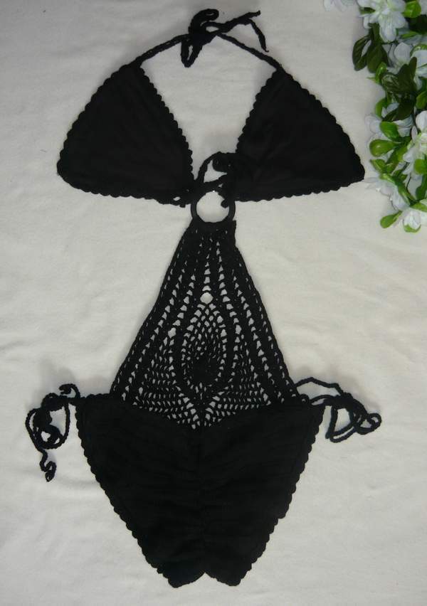 Слитный купальник, изготовленный из вязанного материала, станет ярким дополнением к пляжному гардеробу любой девушки. Лиф и трусики купальники уплотнены хлопковой тканью, что позволяет купальнику оставаться воздушным, при этом не просвечивает. Лиф с трусиками соединен широкой вязанной полосой, скрывая недостаки и подчеркивая достоинства. На попке купальника имеют небольшие сборки,