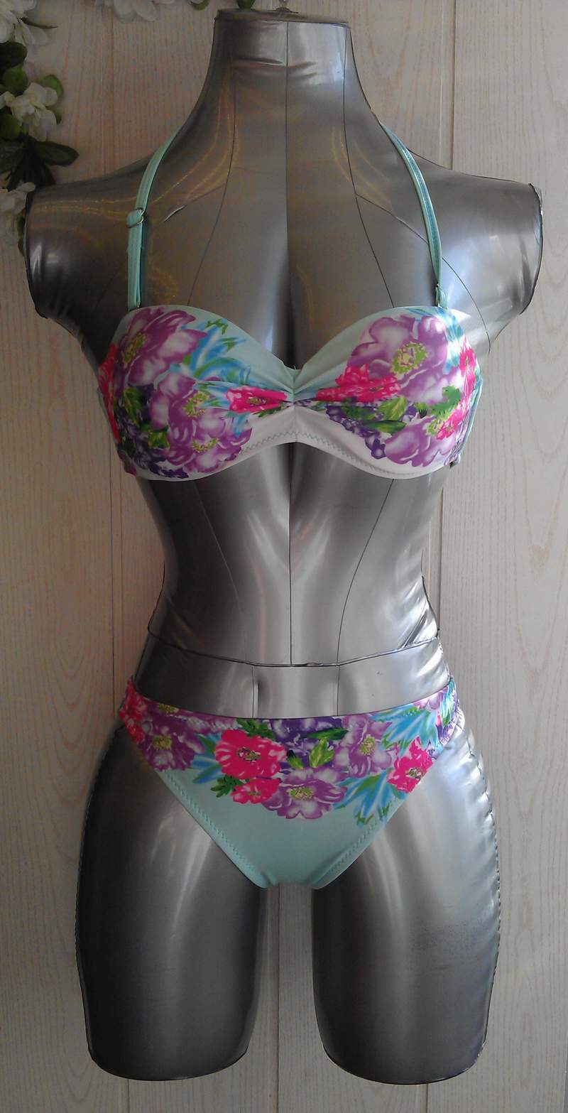 В комплекте классические трусики и лиф с плотным уплотнителем и эффектом Push-UP. Застежка на спинке. В комплекте съемная бретель.