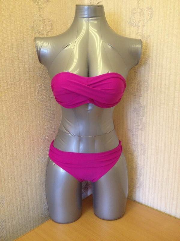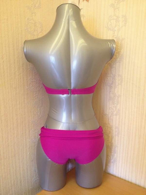 Раздельный купальник с драпировкой из перевернутой ткани в центре лифа. В комплекте съемная поддерживающая бретель через шею и push-up подушечки.