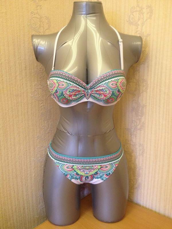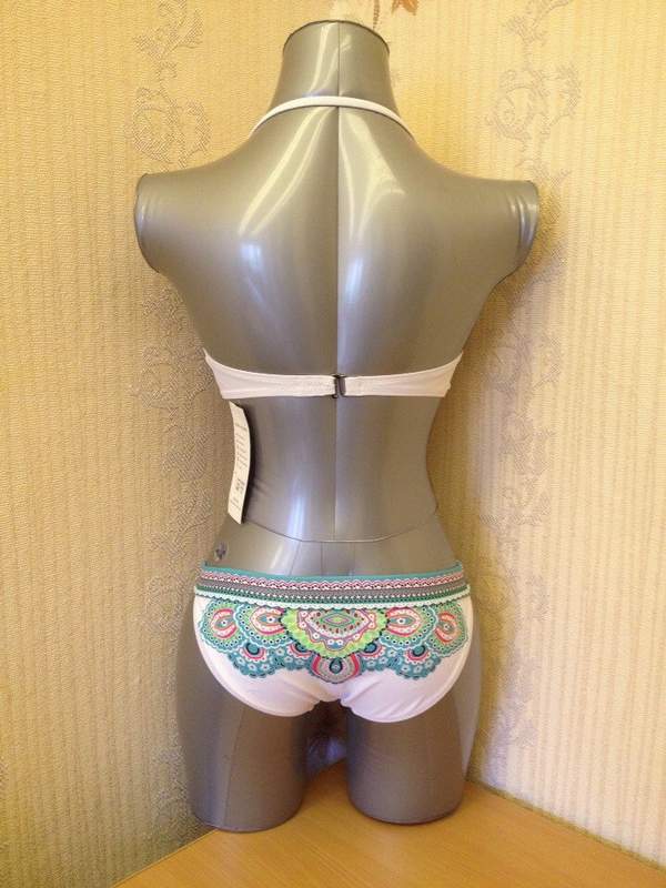 Белый купальник с ярким летним рисуноком зрительно увеличивает грудь за счет эффекта пуш-ап. В комплекте дополнительная съемная лямочка через шею. Трусики классические.