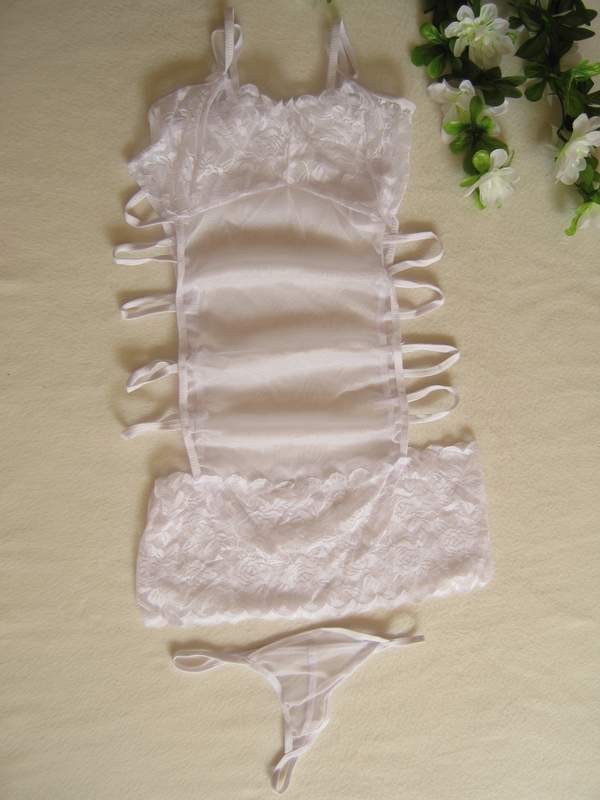 Эротическое мини-платье с ажурным лифом и интригующими вырезами по бокам.