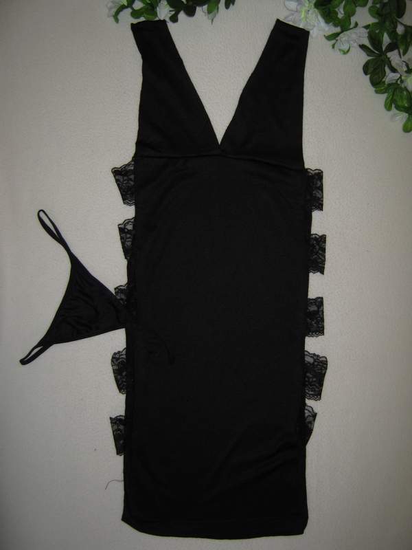 Облегающее мини-платье с пикантными разрезами по бокам и кружевом.