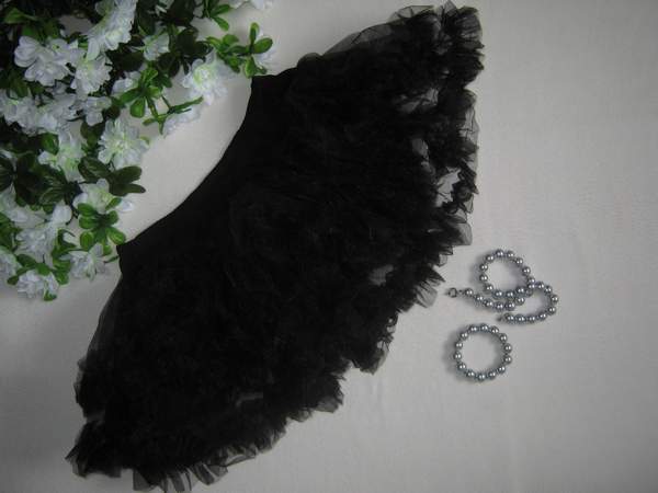 Короткая двухслойная юбочка черного цвета с атласным поясом.