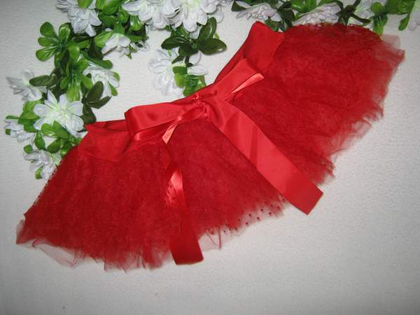 Пышная многослойная юбка с атласным поясом. Спереди большой атласный бантик.