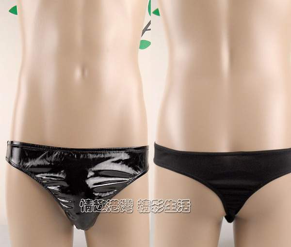 Черные мужские трусы с блестящей лаковой вставкой спереди. Задняя часть выполнена из трикотажной ткани. Растягиваются в диапазоне 70-90 см. Выпускаются в одном размере S-M.