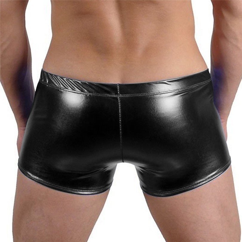 Мужские шорты выполнены из эластичной ткани, имитирующей винил. Декоративная штуровка в области гениталий.