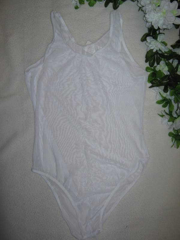 Белое монокини выполнено из полупрозрачного эластичного материала.
