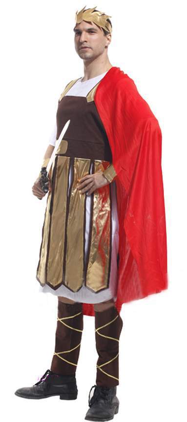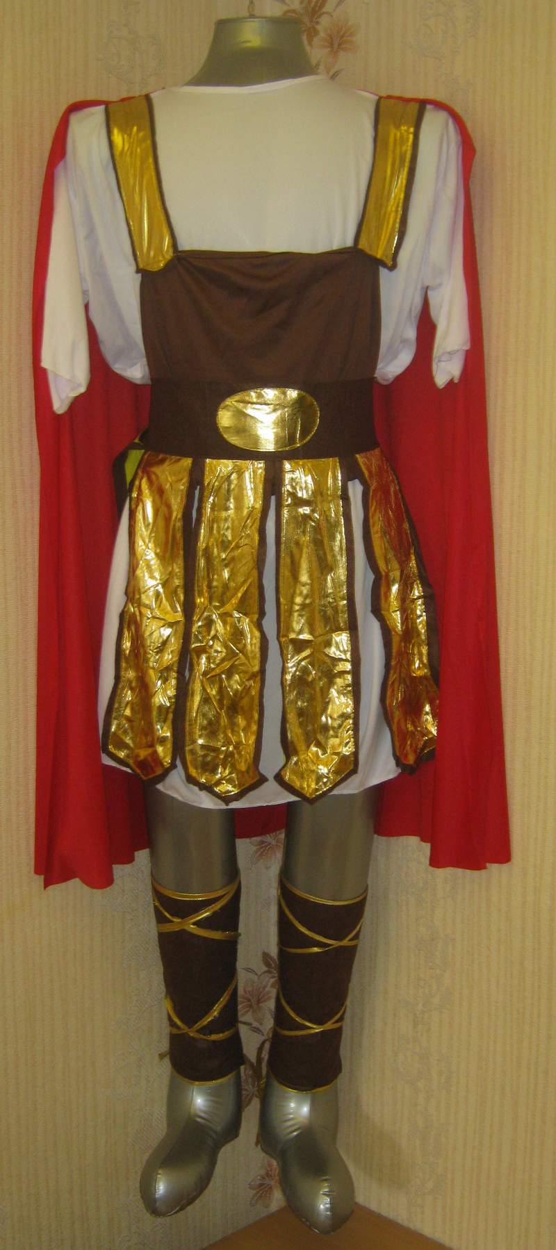 Костюм мужественного гладиатора пользуется огромной популярностью на Хэллоуине! В комплекте: длинная белая туника с красной накидкой, золотая повязка на бедра, золотистые манжеты, золотистые повязки на ноги и венок.
