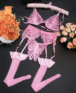 Комплектация: бюстгальтер, трусики, пояс, чулки