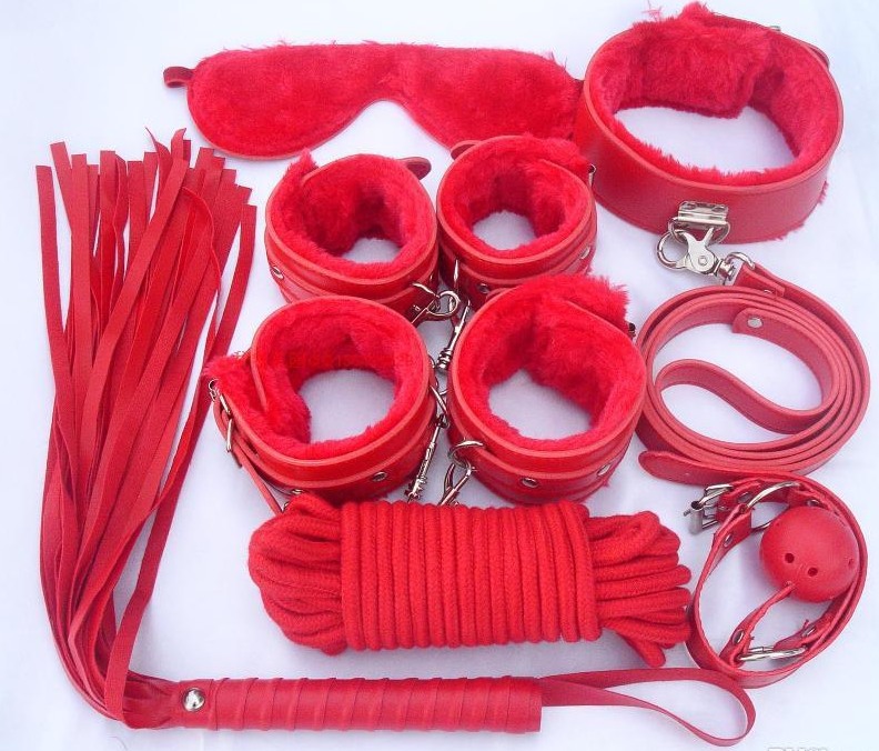 Комплектация: наручники, оковы, кляп, маска, плетка, веревка, ошейник с поводком