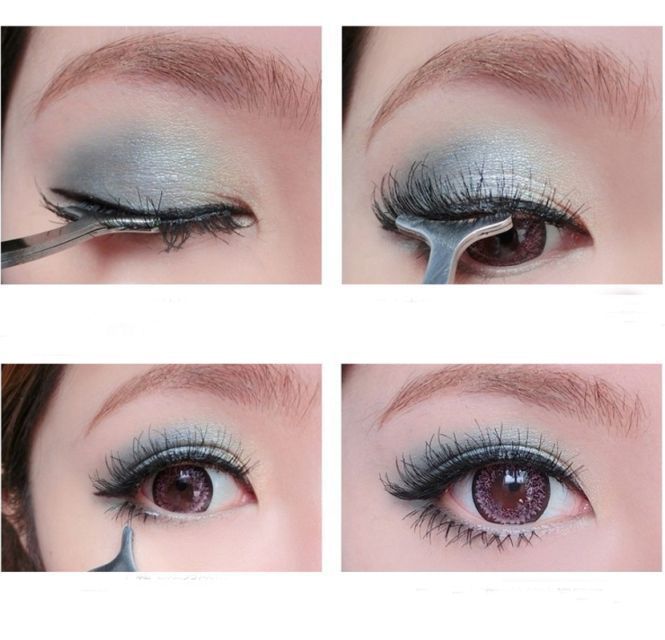 1. Перед приклеиванием ресниц нанесите макияж на веки, подкрасьте свои ресницы тушью