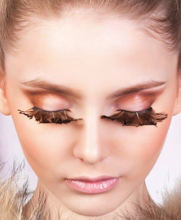 Накладные ресницы на клеевой основе с эффектными коричневыми перьями разных оттенков.