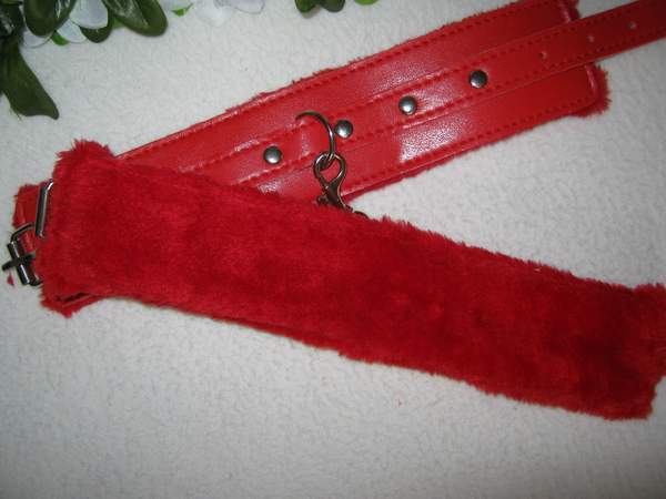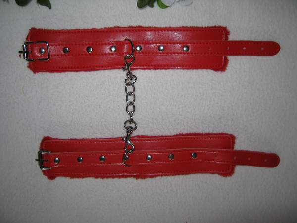 Наручники с изнаночной стороны обшиты мехом, между собой соединены цепочкой. Застежка — ремешок с пряжкой.