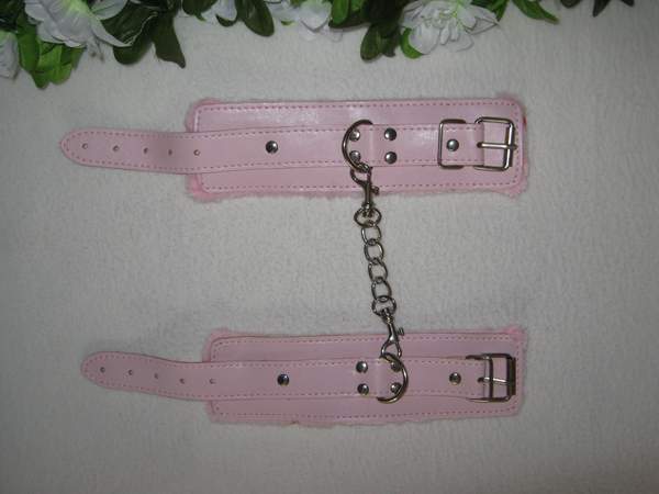 Наручники с изнаночной стороны обшиты мехом, между собой соединены цепочкой. Застежка — ремешок с пряжкой.