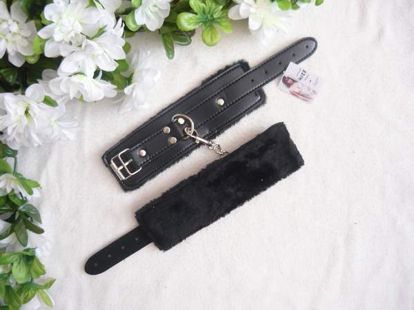 Наручники с изнаночной стороны обшиты мехом, между собой соединены цепочкой. Застежка — ремешок с пряжкой.
