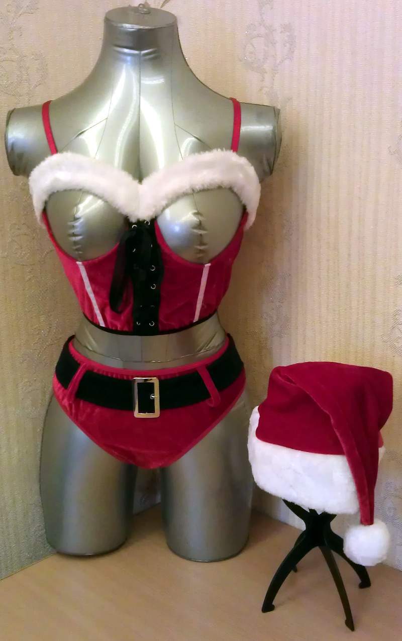 Раздельный бархатный комплект с открытой грудью. Топ декорирован шнуровкой и мехом.