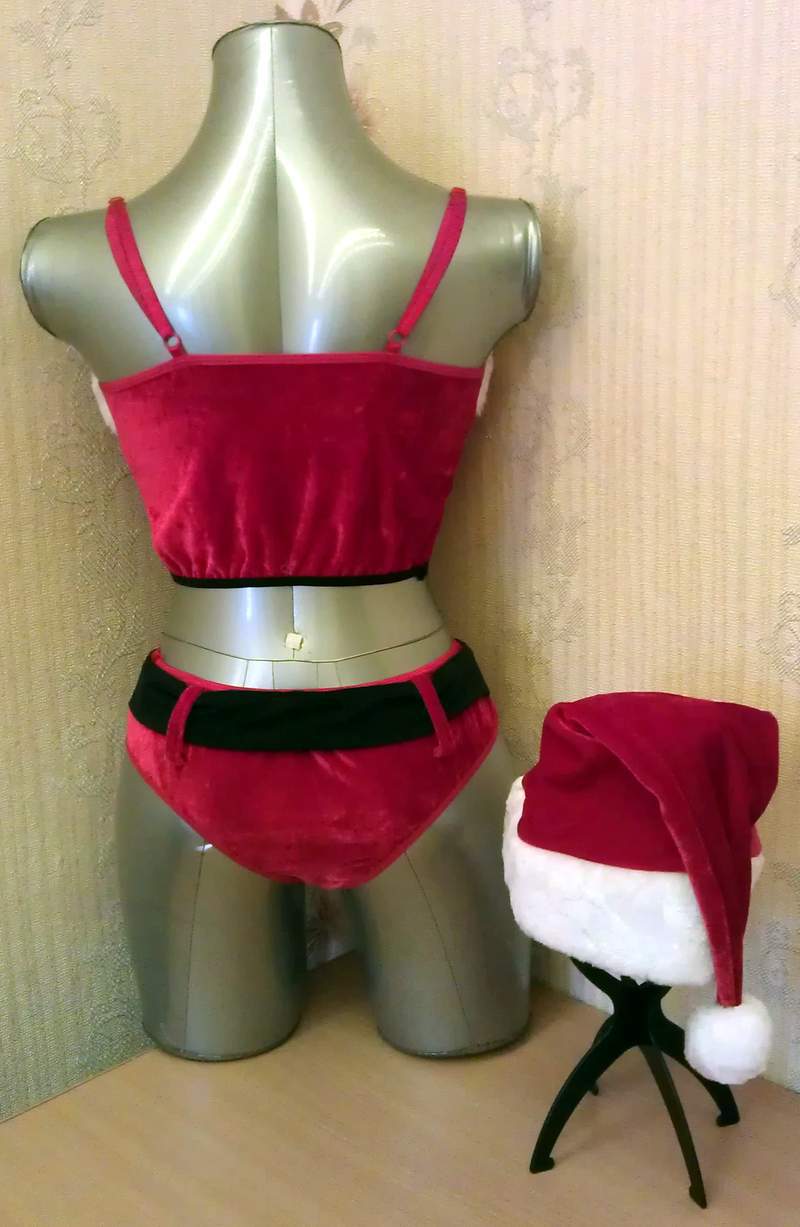 Длина топа 35 см. В области груди топ растягивается в диапазоне 66-90 см, трусики 62-94 см.