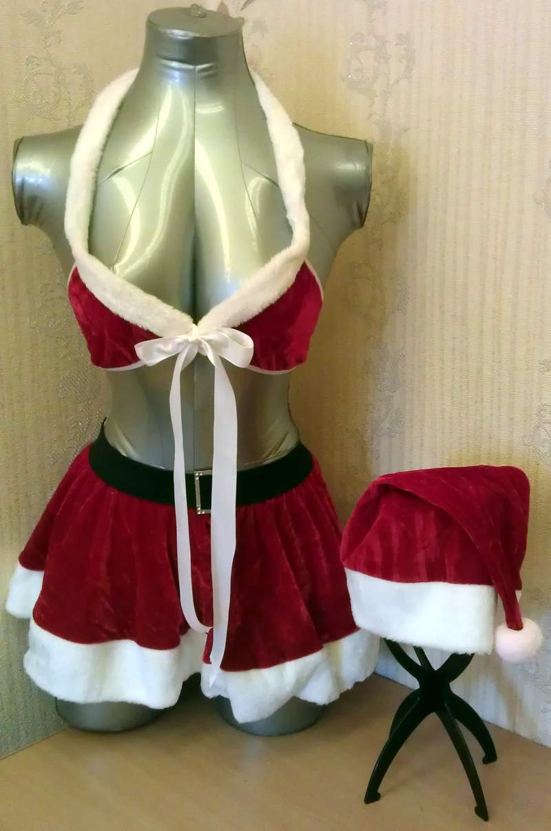 Яркий бархатный комплект для Нового года. Топ завязывается спереди, юбочка на резинке.