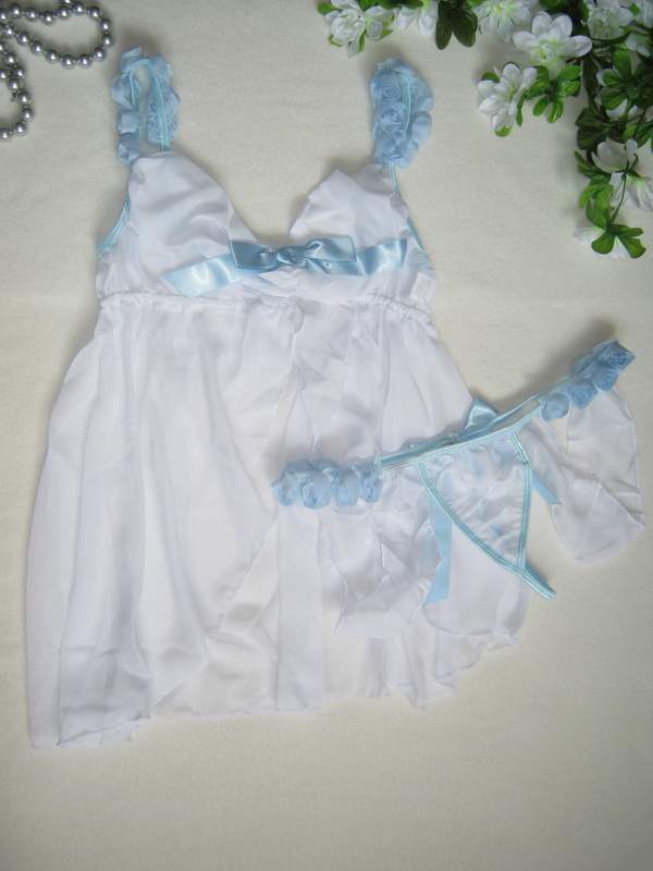 Ночная сорочка белого цвета, украшенная розами нежного цвета.