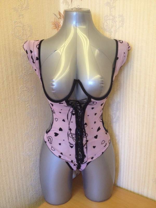 Эротическое боди с открытой грудью, откровенными вырезами и шнуровкой.