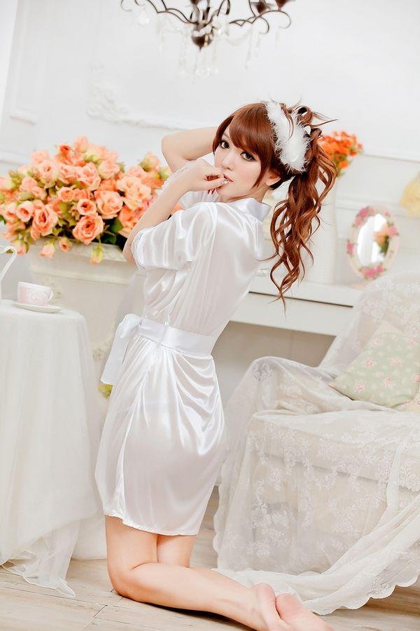 Снежно-белый пеньюар из мягкой как шелк ткани будет незаменимым в ночном гардеробе любой девушки. Легкая ткань, свободный крой, рукава до середины локтя, украшенные нежным кружевом - все это делает модель пеньюара модной в любом сезоне. В комплект входят трусики-стринги.