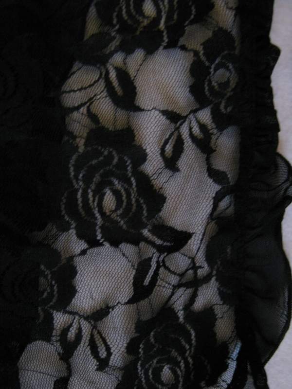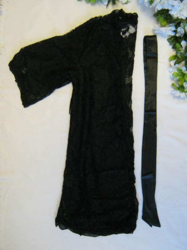 Легкий кружевной пеньюар с цветочным рисунком. В комплекте трусики и пояс.