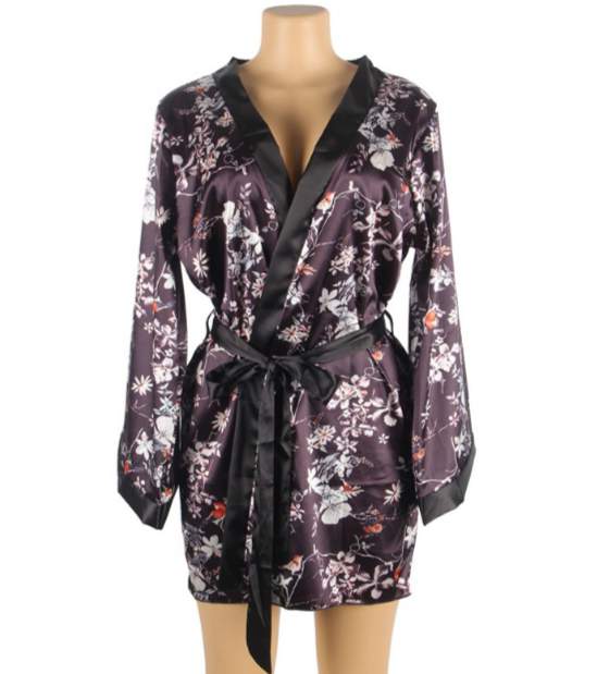 Струящийся атласный пеньюар подчеркнет Вашу красоту. Пеньюар выполнен в цветочных мотивах.