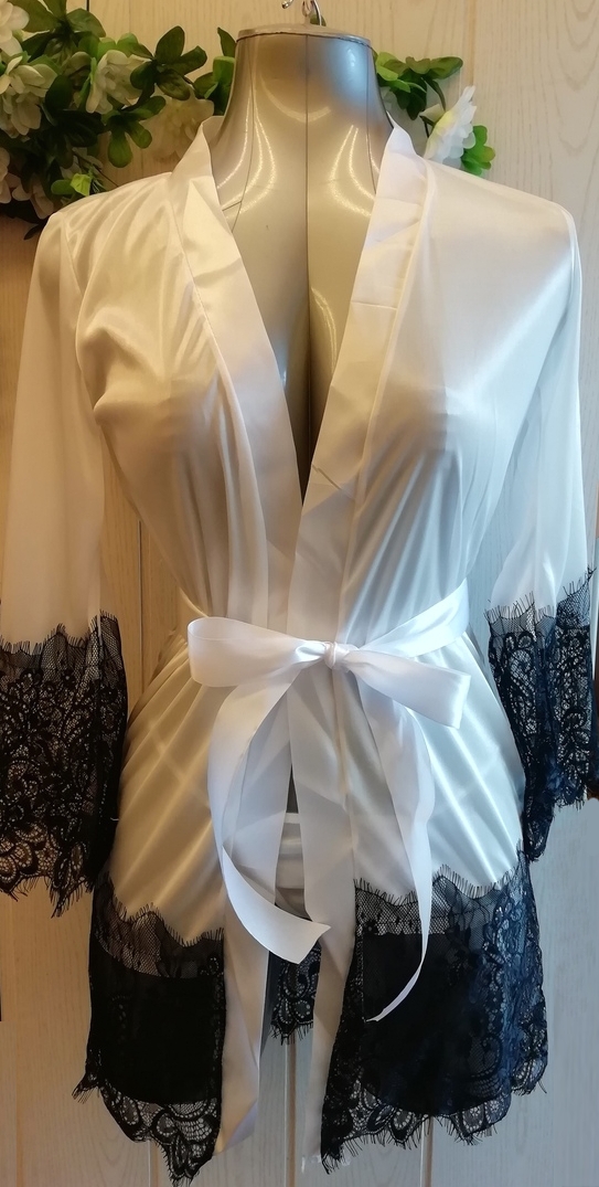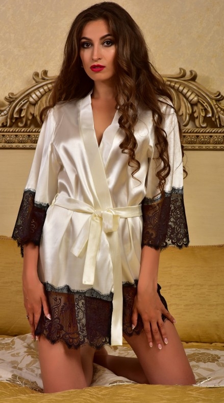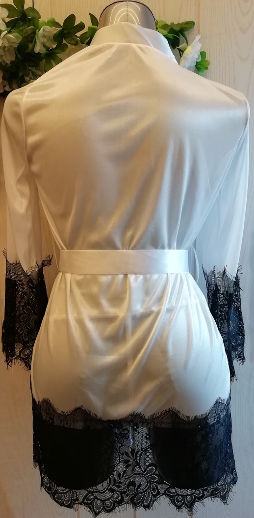Атласный пеньюар с отделкой из нежного черного кружева