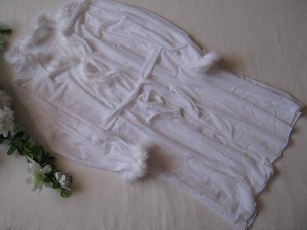 Соблазнитльный прозрачный пеньюар с украшенным по краям пухом марабу.