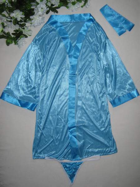 Комплект из пеньюара с поясом и трусиков нежно-голубого цвета. Длина - до середины бедра
