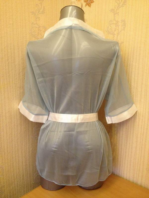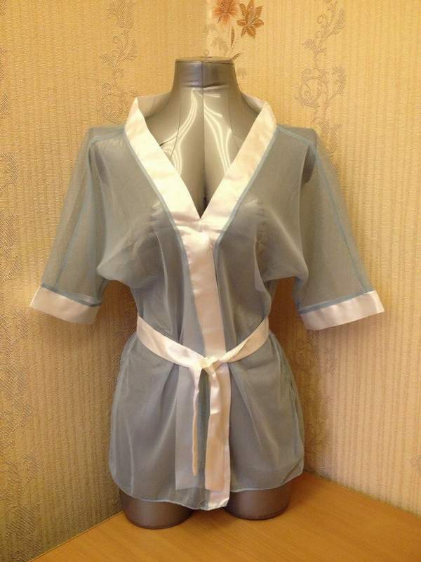 Халатик из полупрозрачной голубой микросетки.