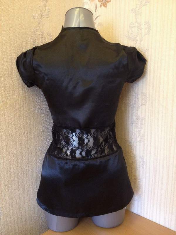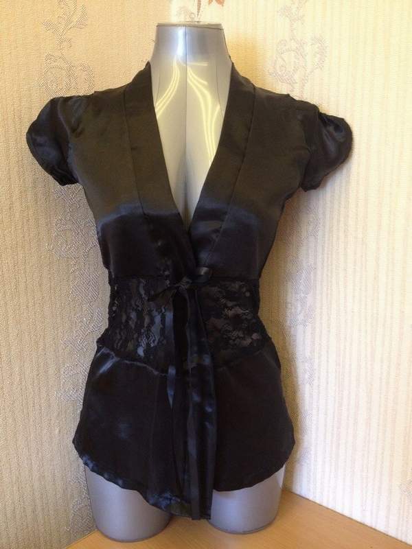 Чёрный атласный пеньюар с кружевной вставкой.