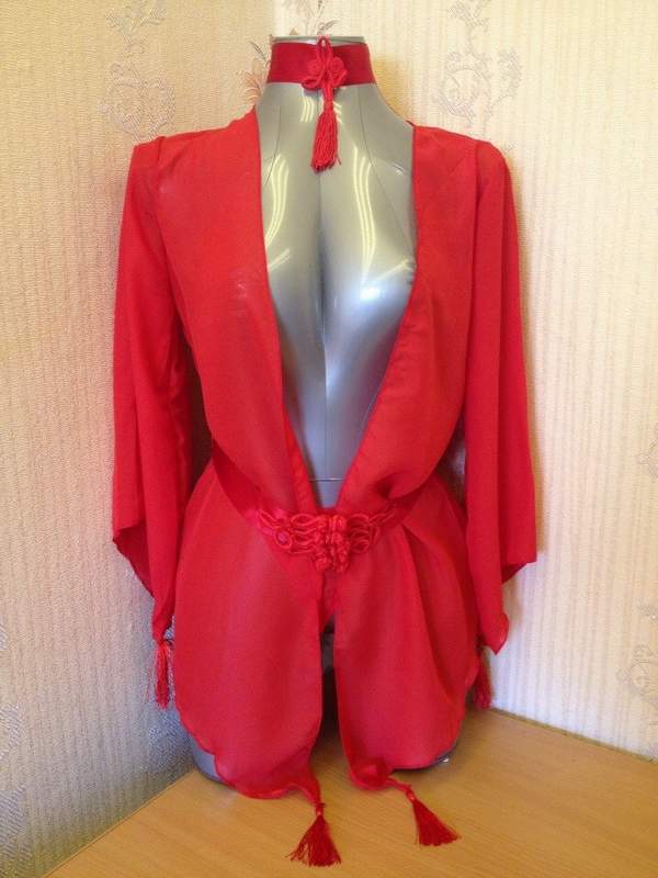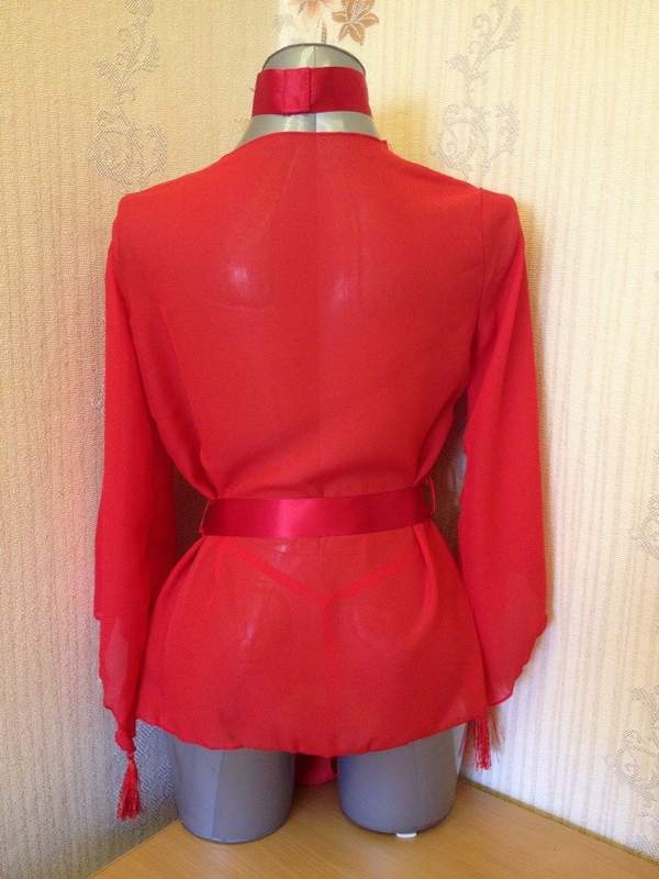 Эротический пеньюар ярко-красного цвета отлично подойдёт для ночного свидания. Кисточки создадут игривое настроение.