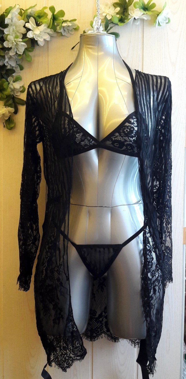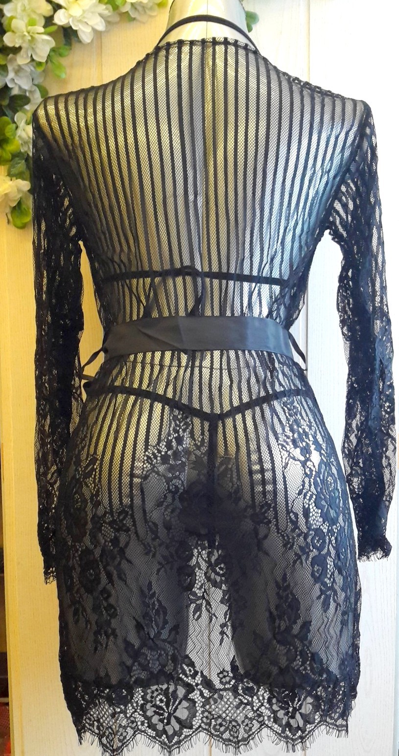 Очаровательный пеньюар черного цвета с цветочным узором придает необыкновенное очарование его обладательнице.