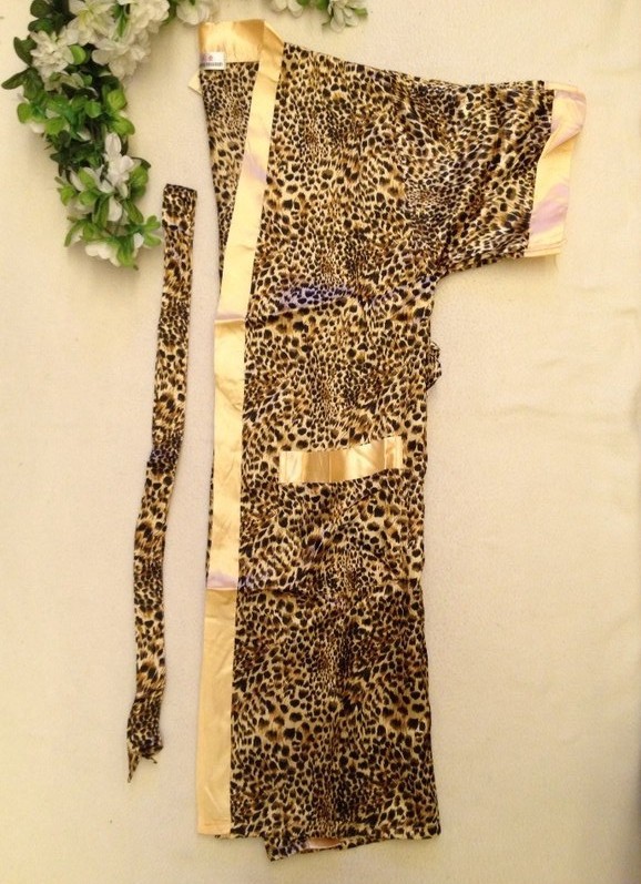 В комплекте атласный пеньюар леопардовой расцветки и однотонная сорочка.