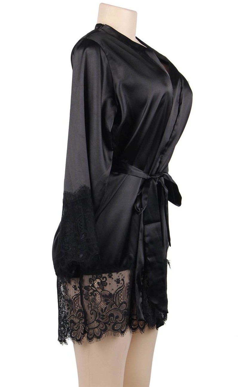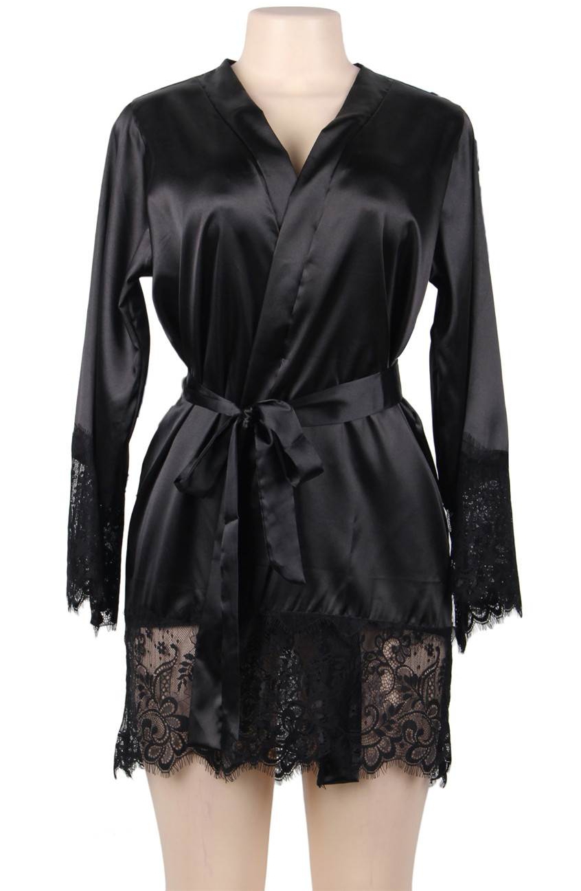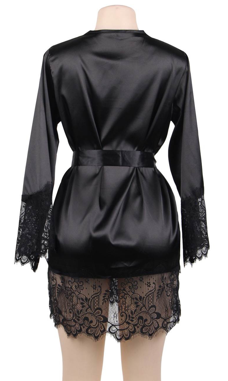Атласный пеньюар с отделкой из нежного черного кружева.